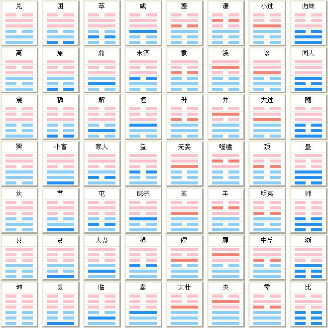 蹇解损益夬姤萃,升困井革鼎震继。