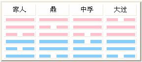 坤为母道,长女继母之道为群是,群愚位贤之意,这一组为四卦,为中女、少女从长女,相从之前为“风火家人”、“风泽中孚”,相从之后为“火风鼎”、“泽风大过”,内外皆以阴柔为治。