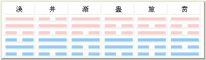 这一组共六个卦,为中男、少男从长女,以及少男从中女,是阳随阴,阳为君,阴为小人,姤惑留天之意。相从前为“风水涣”、“风山渐”、“火山旅”,相从之后为“水风井”、“山风蛊”、“山火贲”。