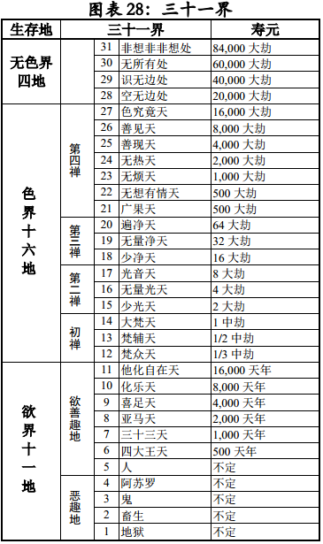 这三十一界有情生存、轮回的地方,称为“有情世间”。在这三十一界中,净居天只是不来与阿拉汉圣者所居之地,四恶趣和无想有情天无圣者,其余诸地皆是凡圣共居之地。
