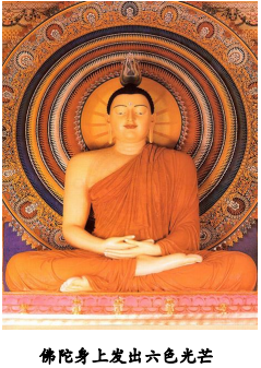 佛陀从《法集》开始省察、思惟, 当他在省思前面六部论的时候,身体并没有发出光芒,但省思到第七部 《巴他那》 的佛陀身上发出六色光芒时候,身体发出强烈的六色光芒,分别为蓝色、黄色、红色、白色、橙色,以及这五种颜色的混合色。这证明佛陀正在省思非常深奥的法,所以最能够体现佛陀所拥有的一切知智是在《巴他那》。现在看到有些佛像背后所发出的颜色光,呈现出蓝色、黄色、红色、白色、橙色和这五种颜色的混合色,以及现在佛教所采用的六色教旗,就是根据这个典故设计的。(Dhs.A.p.13-14)