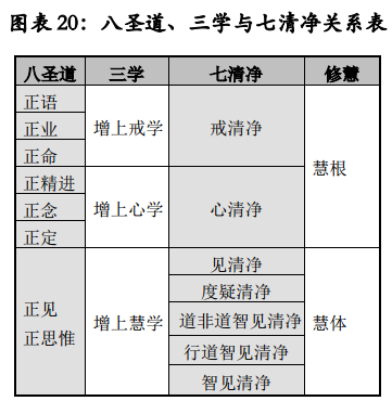 七清净和戒定慧三学是什么关系呢?戒清净属于戒学;心清净属于定学;见清净、度疑清净、道非道智见清净、行道智见清净和智见清净五种属于慧学。也就是说, 这七清净即是戒、定、慧三学,而且是侧重于修习慧学的。
