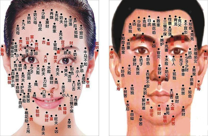 公笃曰。男格外阳内阴。其位动。其化无穷。其格亦至不一。故有仙佛圣贤。富贵贫贱。鲲寡孤独。寿夭凶残之别。而祸福贵贱。并集于一身者。又比比皆是也。如黄帝关尹纯阳之徒。贵而仙也。文王夷齐。圣而困也。禄山绦灌。出身低微。而俱王侯。贱而贵也。齐桓梁武。家世贵重。面俱饿死。贵而凶也。太公甘罗之迟早。颜渊盗跖之寿夭。若类举之。更仆难数矣。持监者。于人之吉凶先后有无之间。须确有所主。又彰彰甚明者也。余尝以多数为主。少数为客。以之断验。应者颇多。又当含其时会。盛时天道淳厚。故以清华为贵。圆降为富。削露为贫。偏薄为贱。高棱为寿。缩弱为夭。冲缺为孤。坑陷为苦。此一定之则也。而无不验焉。令则不然。若犹以前法论之。将有千里之失。至以威露为贵。瘦明为富。厚重为愚。血枯肉流为贱。累试皆然矣。若论寿夭。则寿少两天多矣。