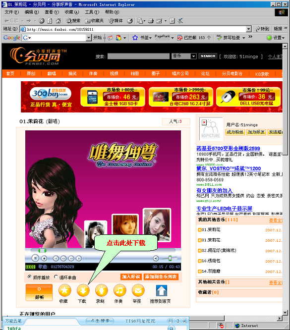 《劝学网》中的音乐全部放在分贝网中小雅的个人博客中,有的音乐文件可以发布,有的不能发布。不能发布的音乐通过连接直接进入小雅的博客来欣赏,能发布的音乐可能直接点击“播放”按钮来欣赏。
