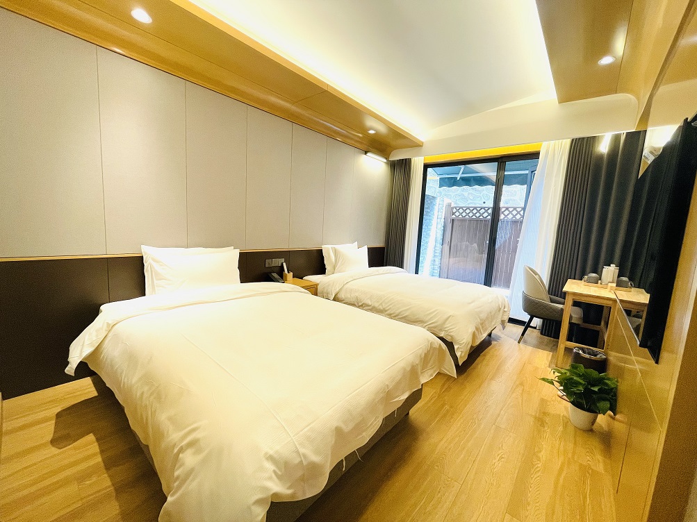 下图是学员所住的宾馆,宽敞舒适,距离书院30米,是王屋老街唯一的现代化建筑。房间为二人间,宾馆有公共活动场所,所有现代化的需求一应俱全。