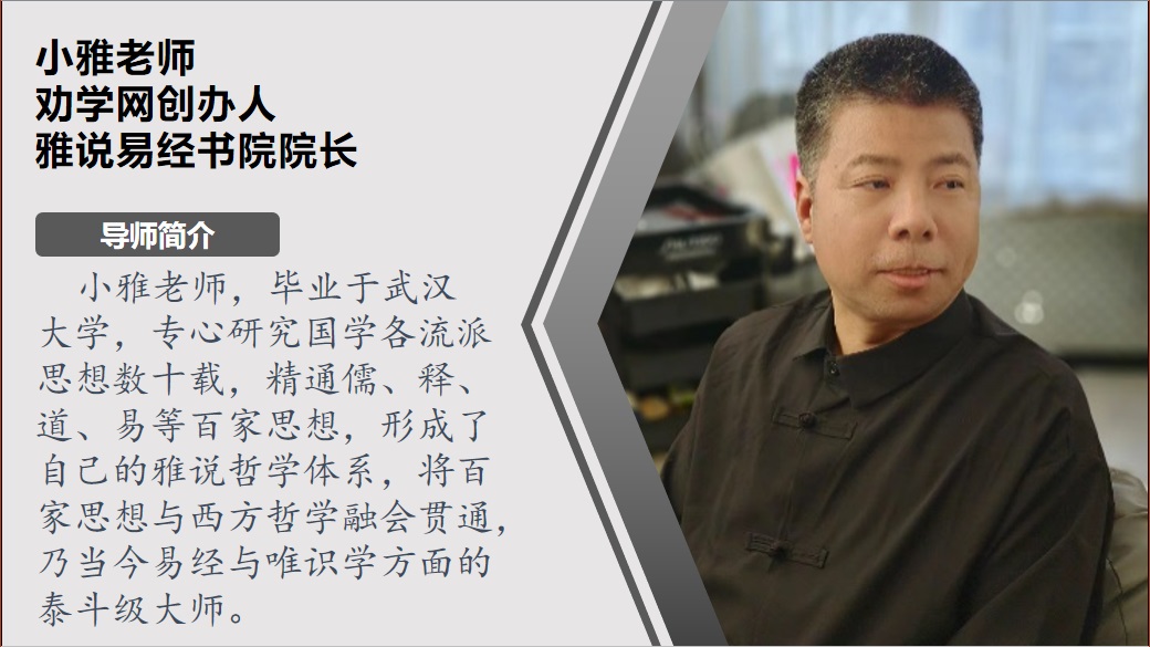 造成这一现象的原因,就在于易经的基础理论,从一开始就被错误解读。雅说易经,从基础开始,纠正社会上对阴阳、五行、先天八卦、方圆图、河图、洛书等概念的错误解读,解密易经玄机,让易经成为每个普通人都能学,且能学会的理论,并且能将易经原理,用之于工作和生活,真正解决事业上的困局。