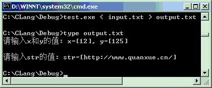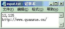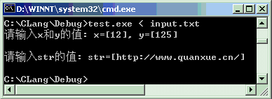 对于从屏幕中要输入的内容,可以事先输入在文本文件中,运行程序时用“<”将文件导入。注意,从屏幕中直接输入时,因为有回车符,所以显示时与读取文件略有不同。