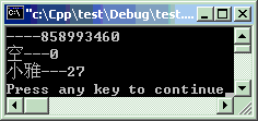 #include<iostream>#include<string>using namespacestd;classstuff { string name;intage;public: stuff() { //这是写法一 cout << name << "---" << age << endl; name = "空"; age = 0; cout << name << "---" << age << endl; } stuff(string n,inta):name(n),age(a) //这是写法二 { cout << name << "---" << age << endl; } string getName() {returnname; }intgetAge() {returnage; } };intmain ( ) { stuff st2; stuff st1("小雅", 27);return0; }
